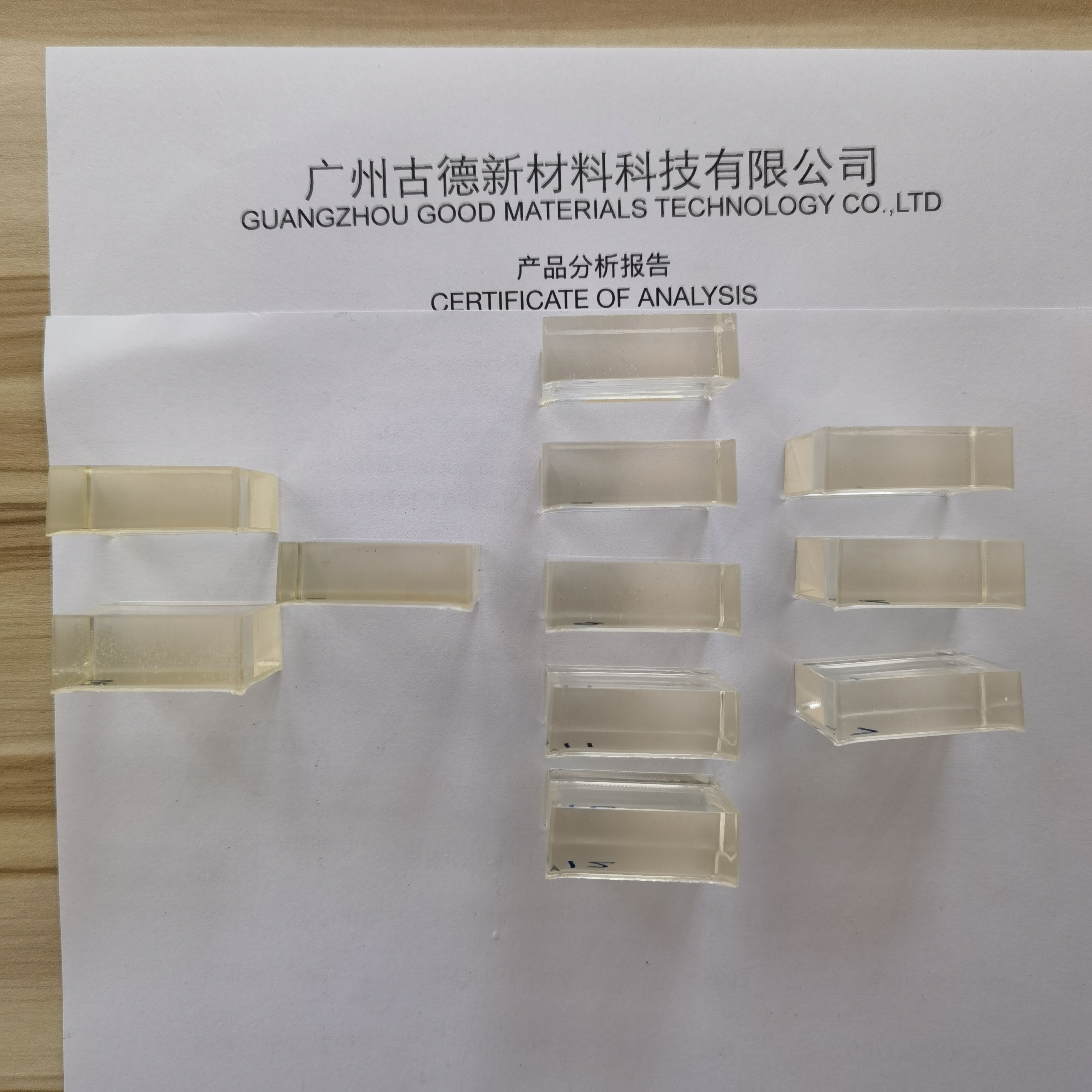 | 實驗材料:環氧樹脂128+苯甲醇+亨斯曼D230+抗黃變劑 實驗條件:實驗材料常溫固化48小時后,放在烤箱130度烘烤4小時 | |||